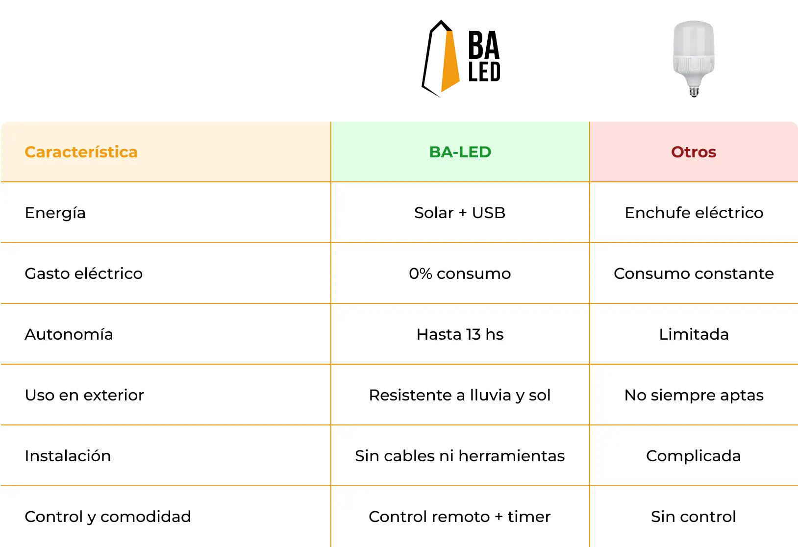 Luz cálida y funcional para disfrutar de noche, sin instalaciones complejas.