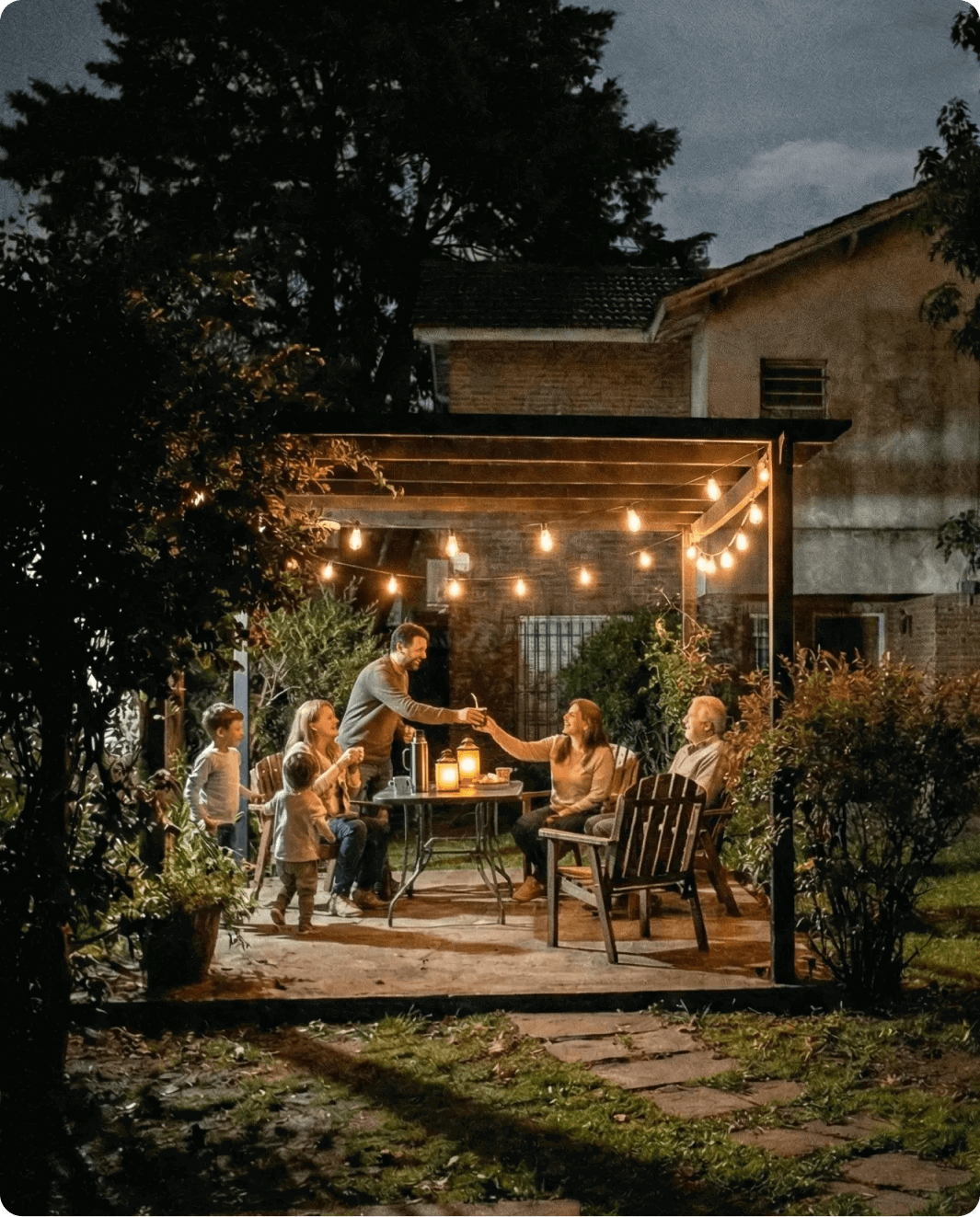 Luz cálida que convierte patios, balcones y terrazas en lugares donde dan ganas de quedarse un rato más.